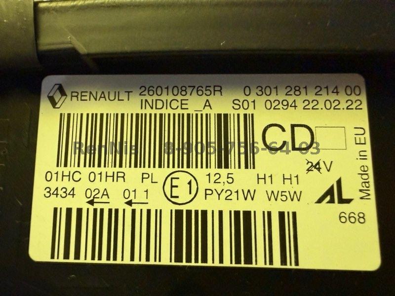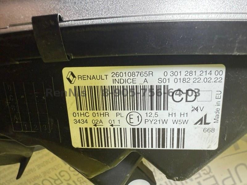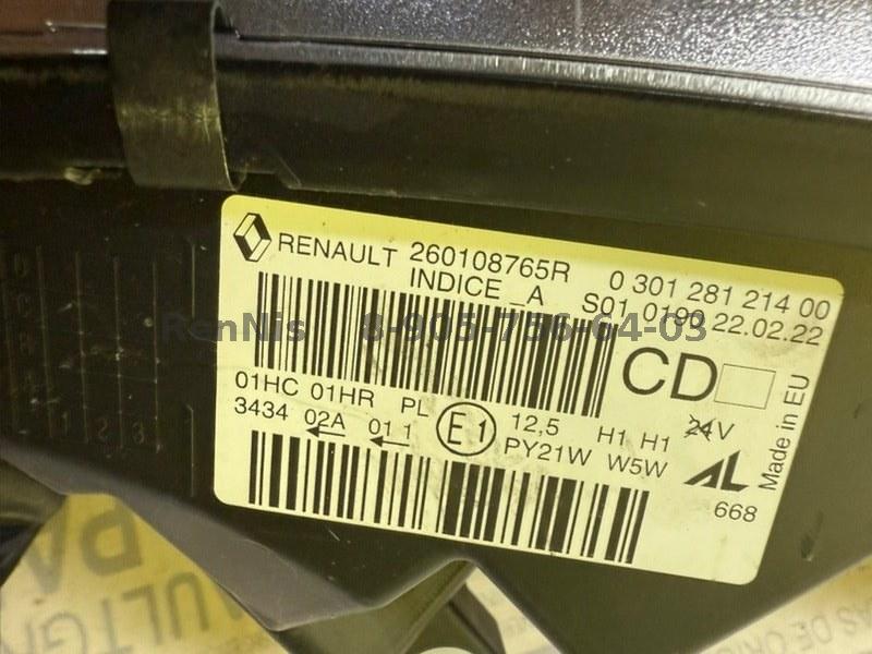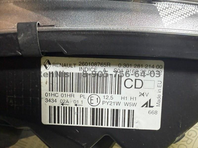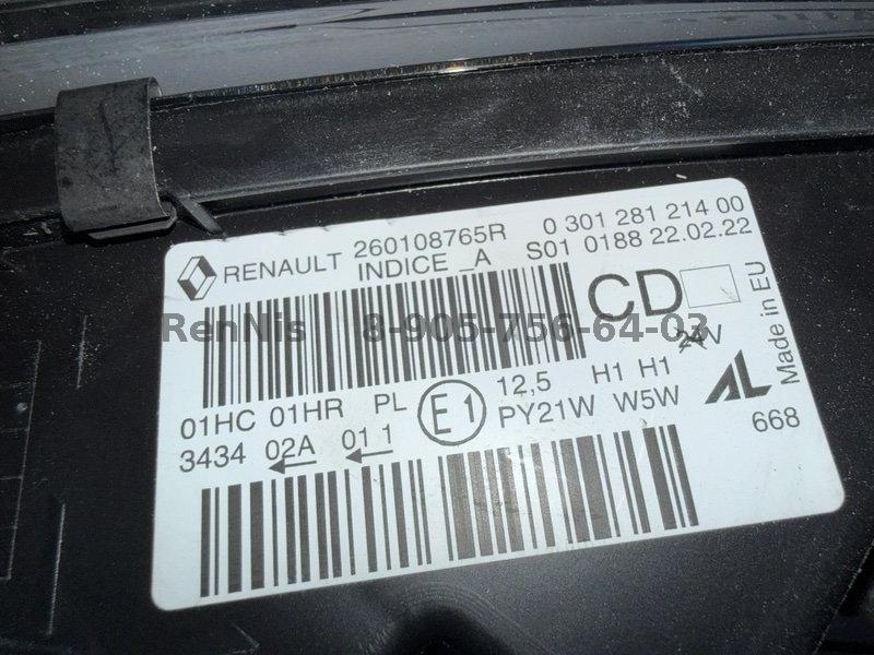 Рено Каптур фара передняя ПРАВАЯ ОРИГИНАЛ 260108765R №Б1852